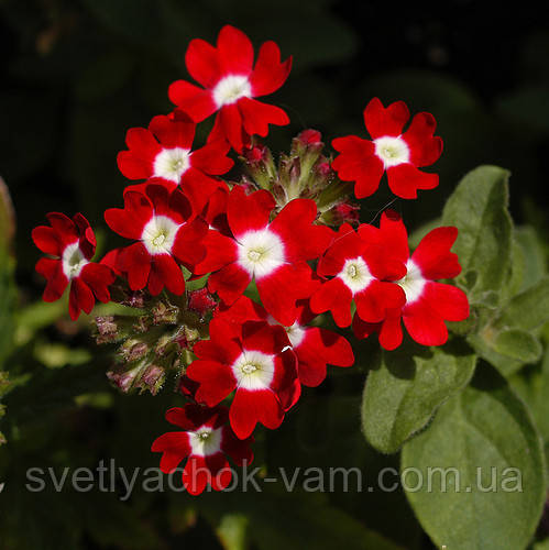 У вербени гібридної дрібні квітки найрізноманітнішої забарвлення (червоні, темно-сині, рожеві, білі), зібрані в суцвіття щиток. Насіння вербени висівають в кінці лютого або початку березня.
