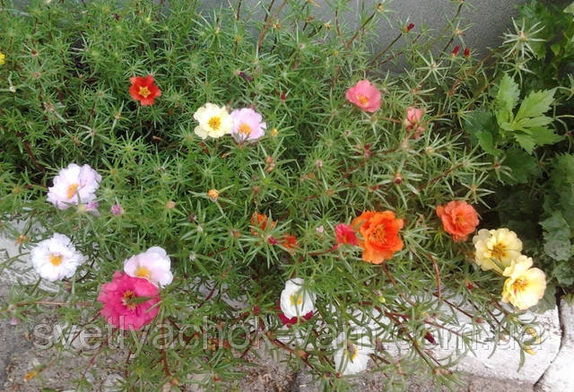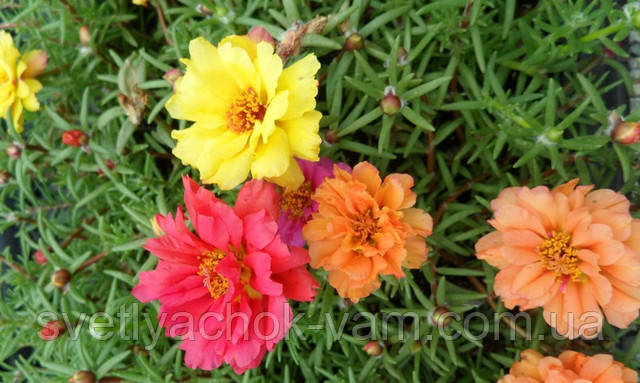 Портулак має безліч видів. Вони відрізняються забарвленням пелюсток.