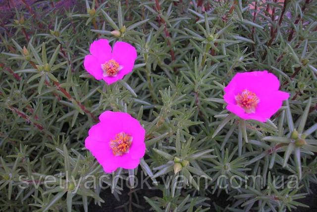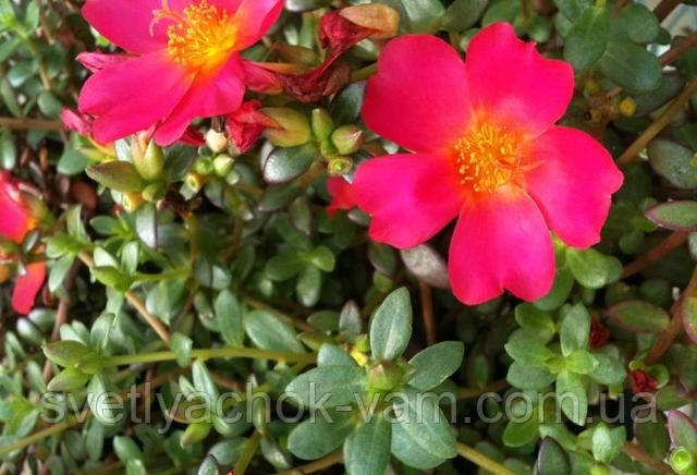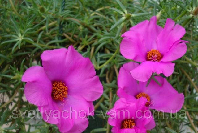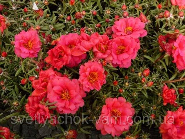 З представленого рослини добре виходять клумби квіткові килими. Квітки дуже яскраві – помаранчеві, білі, жовті, рожеві і червоні. Увечері бутони закриваються, але в ранковий час розкриваються знову. Портулаку потрібен догляд, сонце і тепло. Його батьківщина – це Бразилія і Аргентина. В Європу рослину завезли на початку 19 століття. У нашій країні воно вирощується тільки як літник.