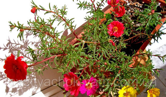 За портулаком потрібен ретельний догляд. Освітлення повинне бути яскравим, тільки так можна домогтися гарного цвітіння. При вирощуванні рослини з насіння будинку варто віддати йому південний підвіконня. Відмінний варіант – віконні і балконні ящики.